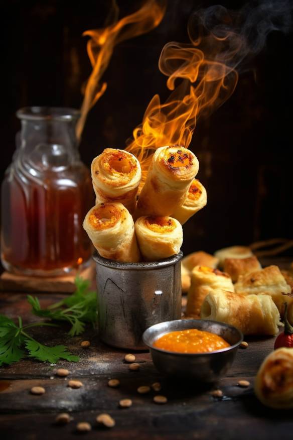 Feuerzangenbowle-Fingerfood mit Blätterteig und Gewürzen.
