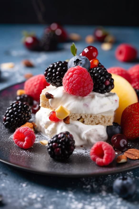 Fruchtiger Quarksnack auf einem Teller