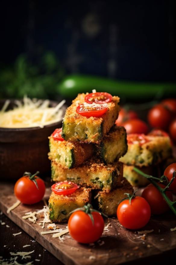 Knuspriges Zucchini-Brot-Fingerfood mit Tomaten und Käse