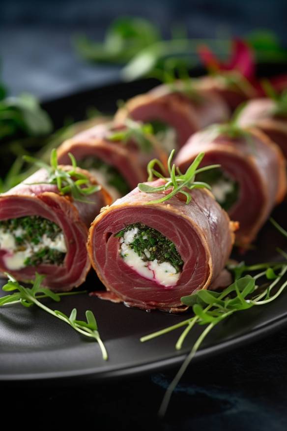 Roastbeef-Röllchen mit Frischkäse und Rucola - Ausgefallenes Kochrezept