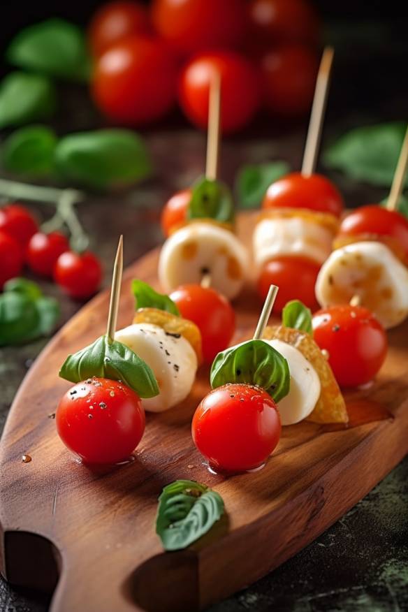 Diese Tomaten-Mozzarella-Spieße sind nicht nur ein echter Hingucker auf jeder Party, sondern auch super einfach vorzubereiten. Ideal als Fingerfood zum Vorbereiten am Vortag. Die würzige Marinade gibt den Spießen eine besondere Note und lässt sie noch besser schmecken.
